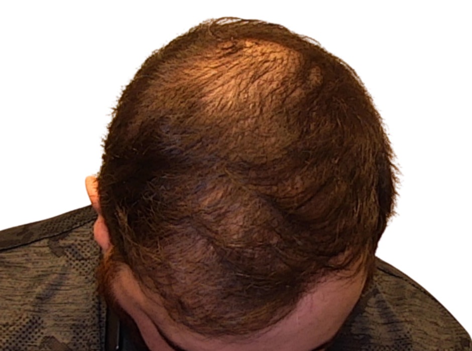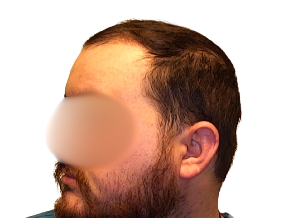 This patient was experiencing significant thinning and miniaturization across the top of his scalp, progressing toward a Norwood 5 pattern. We planned to restore density from the hairline through the crown. Although the ideal plan called for 4,500 grafts, his budget allowed for a 2,500-graft procedure, which we performed using the FUE shave technique. Growth factors were injected at the time of the transplant, and he began both minoxidil and finasteride afterward to support continued improvement.