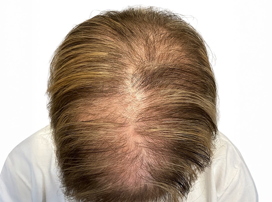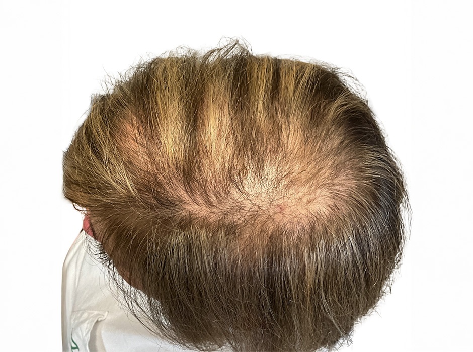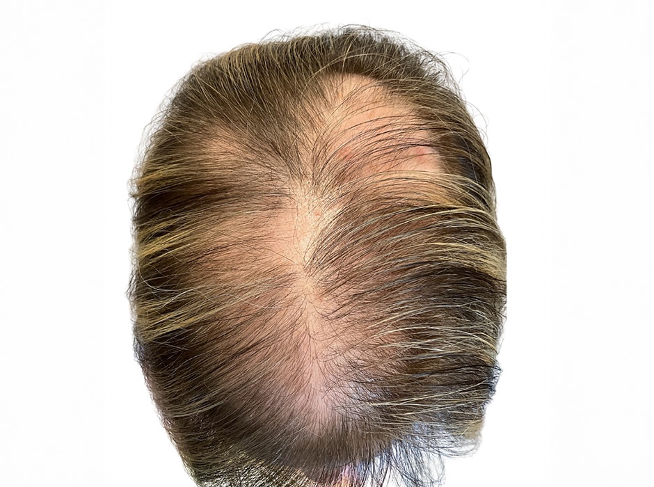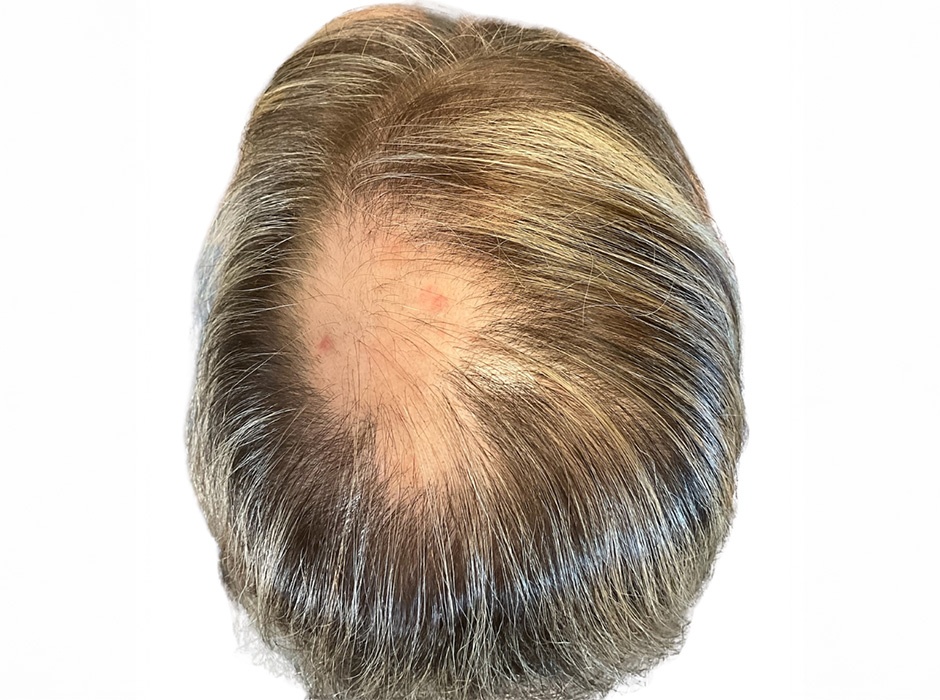 This patient presented with a six-week history of significant hair loss in the crown area. She had previously been prescribed finasteride and underwent a biopsy confirming alopecia areata. Seeking a more aggressive yet non-steroidal approach, we treated her with the Alma TED device to deliver a powerful plant-based anti-inflammatory serum, and provided a complementary at-home serum to support ongoing improvement. She completed three treatments spaced about one month apart.